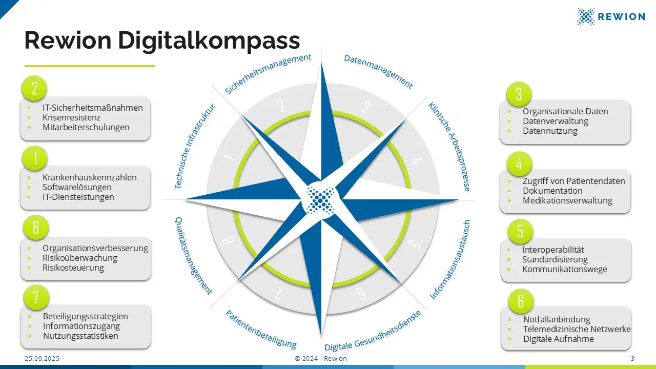 Teilnehmer erfahren, wie bewährte Modelle wie EMRAM und Digitalradar zur Bewertung und Verbesserung der digitalen Infrastruktur eingesetzt werden können. Zudem stellen wir den „Rewion Digitalkompass“ vor, ein Werkzeug zur gezielten Umsetzung digitaler Strategien.
