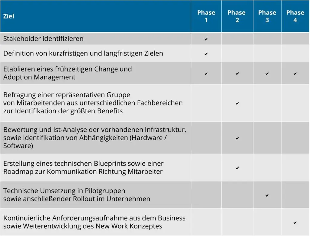 Unternehmen sollten sich im Klaren darüber sein, welche Ziele sie im Zusammenhang mit New Work verfolgen und welche Voraussetzungen dafür geschaffen werden müssen. Ganz entscheidend hierbei ist die ganzheitliche Betrachtung des Themas. Viele Unternehmen begehen den Fehler, sich ausschließlich auf den technologischen Aspekt der neuen Arbeitswelt zu konzentrieren. Doch neben der Technologie sind auch der Mensch und der Arbeitsort zentrale Aspekte.