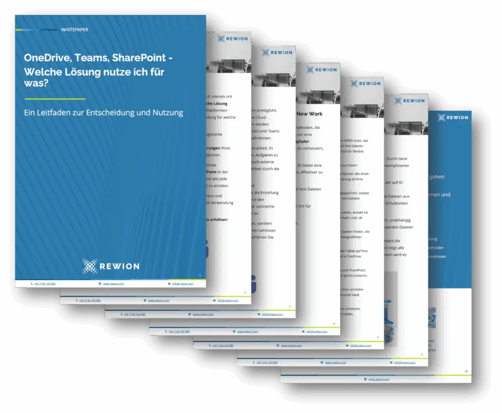 Rewion bietet umfassende Microsoft 365 Beratung von der Konzepterstellung über Tenant Setup und Migration bis zur Administration und Datenschutzkonformität. Wir führen Tenant Reviews durch, konfigurieren IT-Security mit Conditional Access, Microsoft Defender und MFA, implementieren Intune für Gerätemanagement und begleiten Exchange-Migrationen. Unsere Expertise umfasst Teams-Konfiguration, SharePoint-Strukturierung und die Integration von Backup-Lösungen unter Einhaltung der Compliance-Anforderungen. Als herstellerunabhängiger Partner erstellen wir individuelle Lösungen für reibungslose, flexible Kollaboration und sichere Daten in Ihrem M365 Tenant. Von Quick Wins bis zur langfristigen Betreuung stehen wir als Ansprechpartner für alle M365-Fragen zur Verfügung.